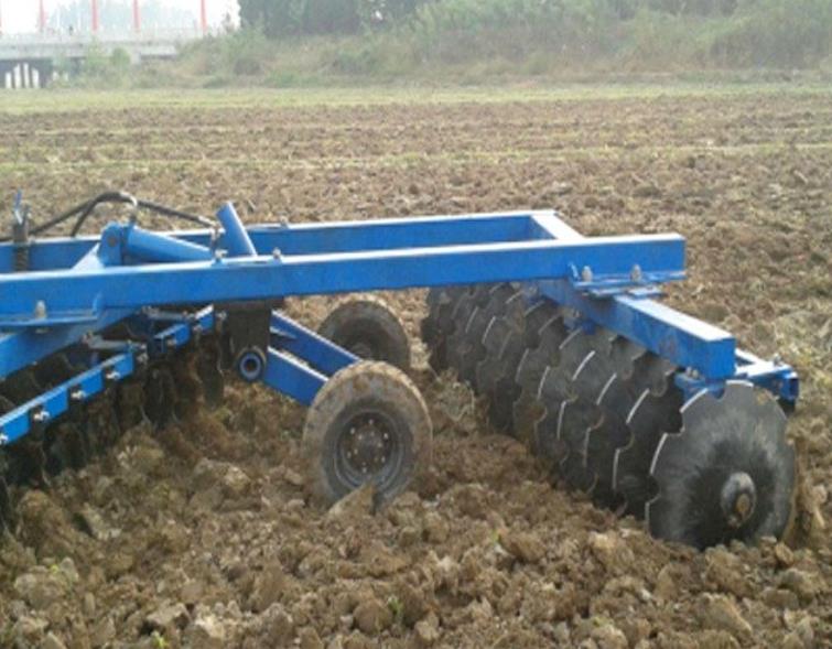 调节与辅助部件:带偏角和耕作深度调节机构,偏角一般能调到 10° – 25°,深度常见的能到 5 – 20 厘米,重型机型还能更深。部分机型有液压调平系统,在驾驶室里就能操作调平;还有的带镇压轮或配重箱,能压实土壤保住墒情,也能帮圆盘更好地入土。
